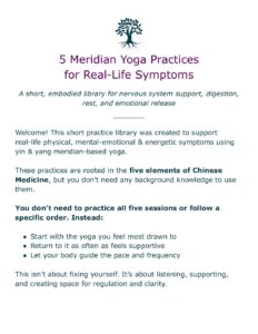 5 Meridian Yoga Practices for Real-Life Symptoms Have a question or insight to share? I welcome thoughtful comments and conversation.Cancel reply